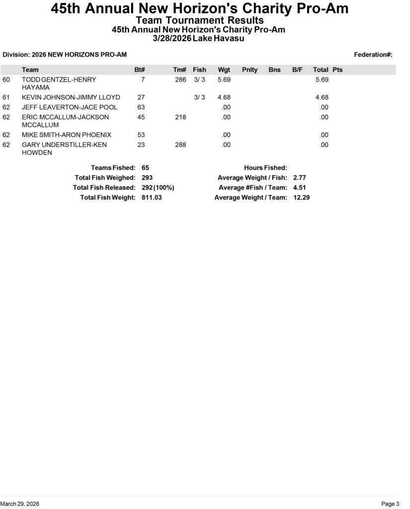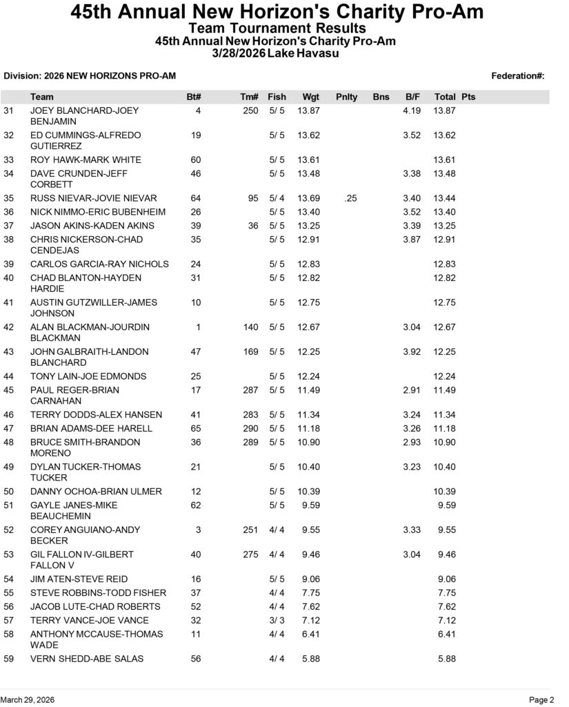 45th Annual New Horizons Pro-Am 03/28/2026 Lake Havasu